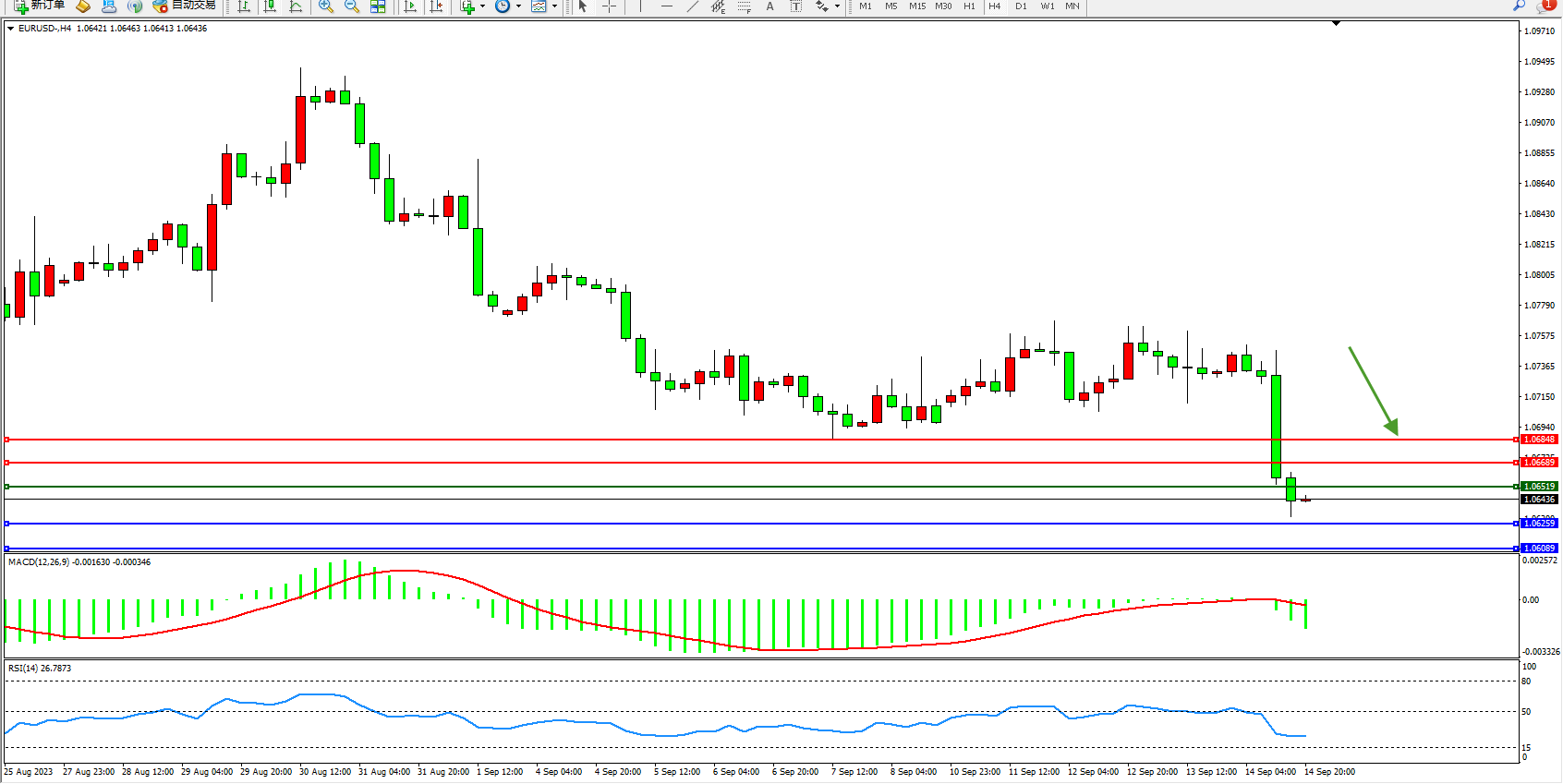 交易策略:1.06519下方看跌,目标1.06259 1.06089
