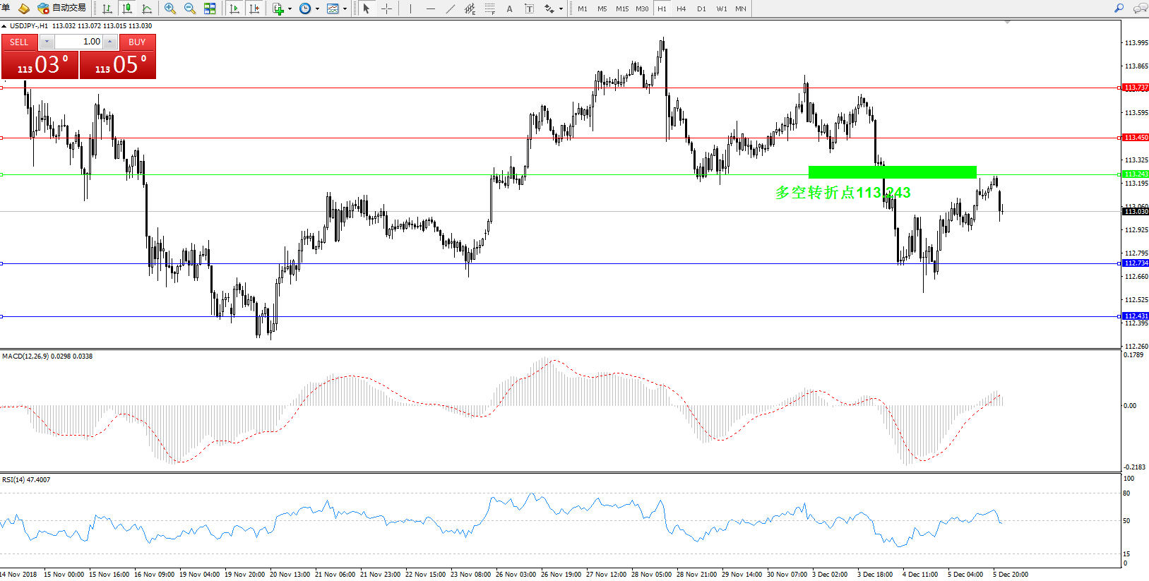 交易策略:113.423上方看涨,目标113.45、113.737