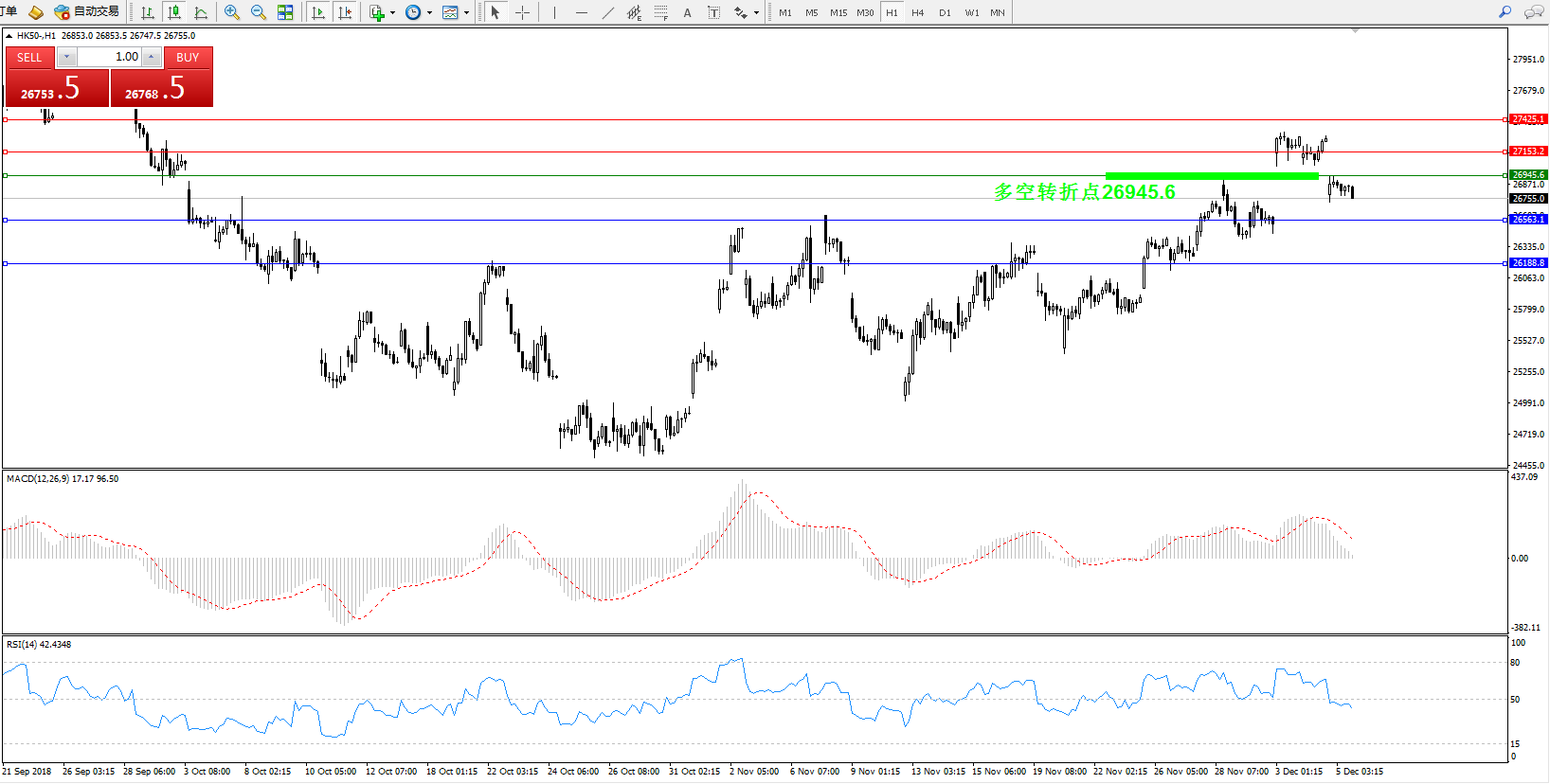 交易策略:26945.6下方看跌,目标26563、26188