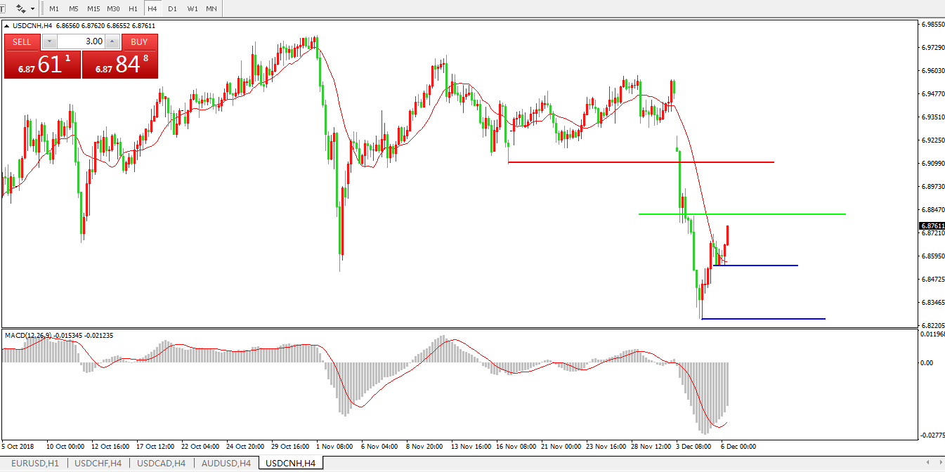 美元兑人民币USDCNH4小时图: