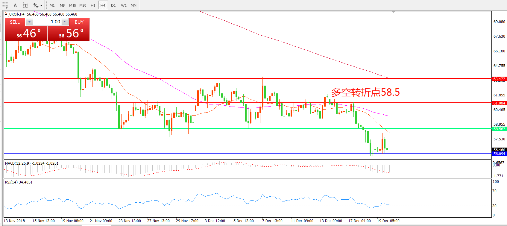 交易策略:在58.50之下看跌,目标56.00    53.00