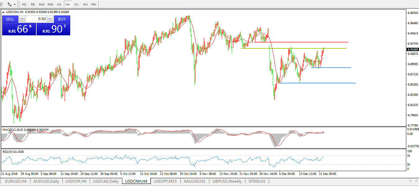 备选策略: 在6.9200之上,看涨,目标价位为6.9300,然后为6.9557。