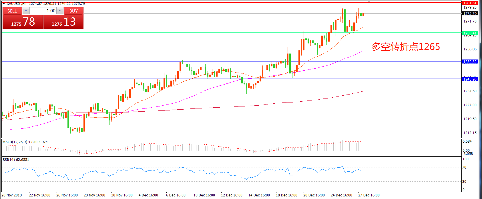 交易策略:在1265.00之上看涨,目标1280.00  1300.00