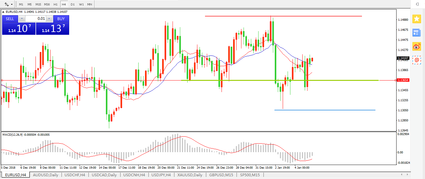 欧元兑美元EURUSD  4小时: