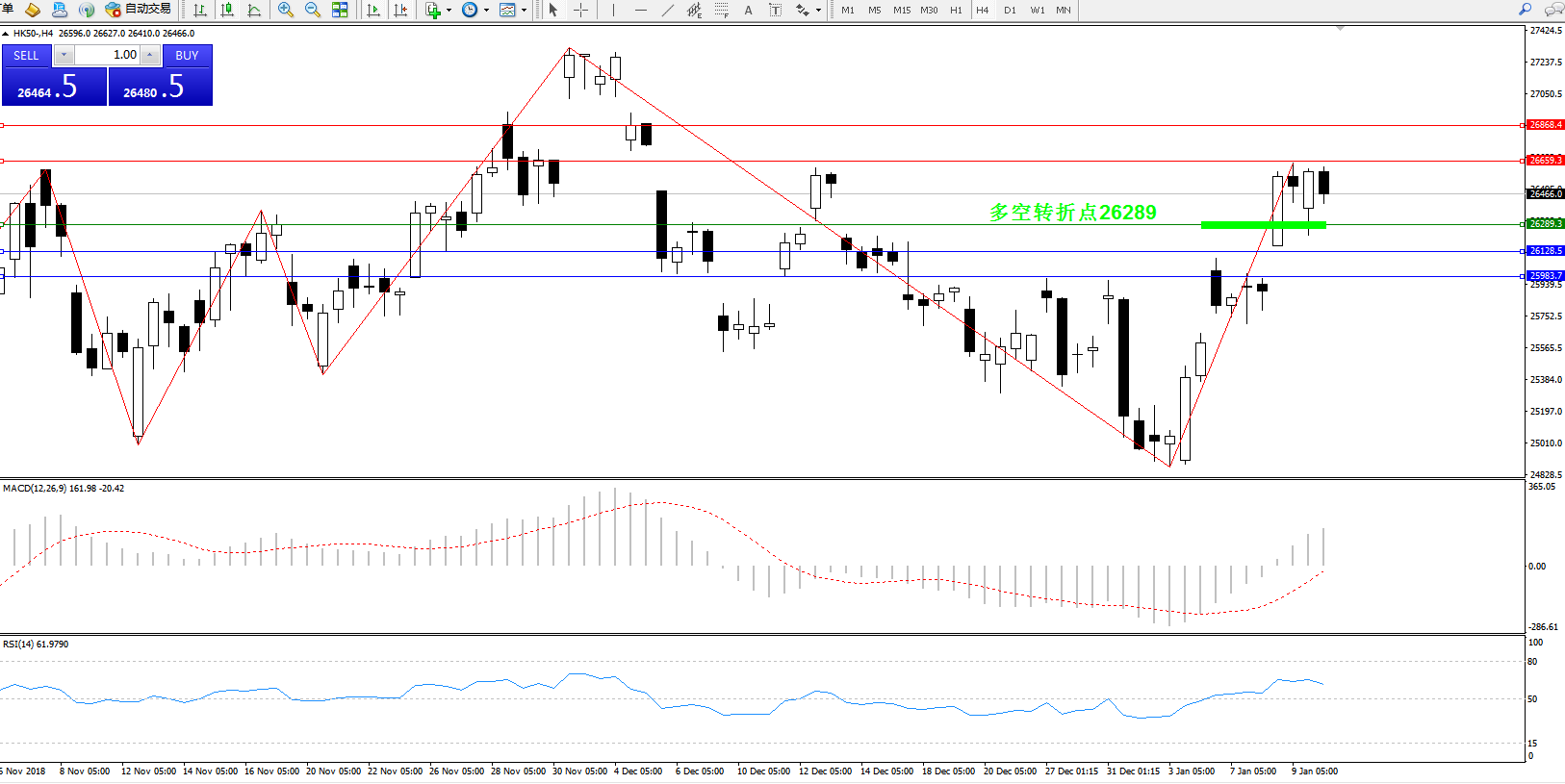 恒指HK50 ——4小时K线图显示: