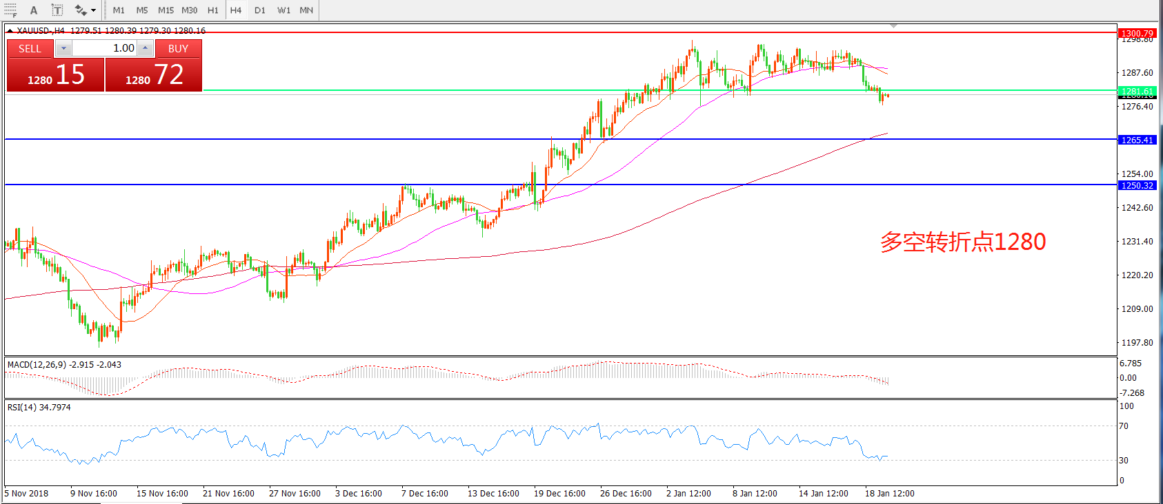 多空转折点:1280.00