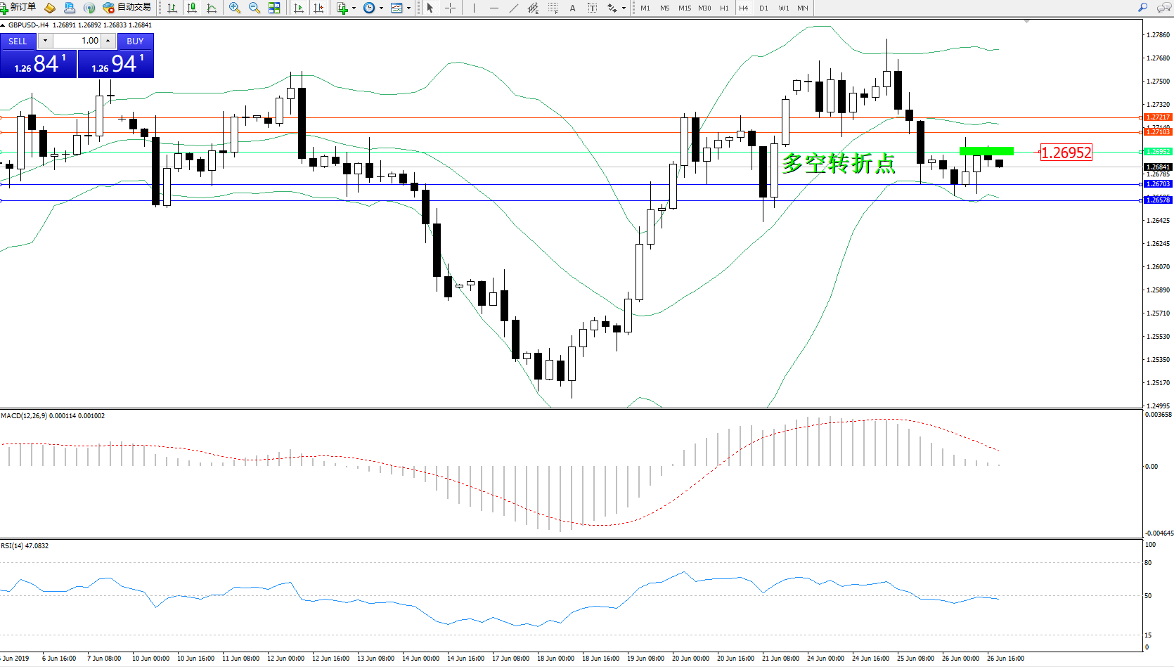 交易策略:1.26952下方看跌,目标1.26703、1.26578