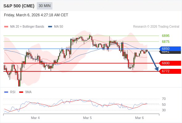 在 6850 之下,看跌,目标价位为 6800 ,然后为 6772 。