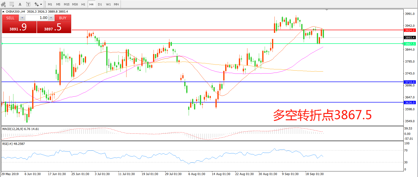 沪深300指数CHINA300 4小时图