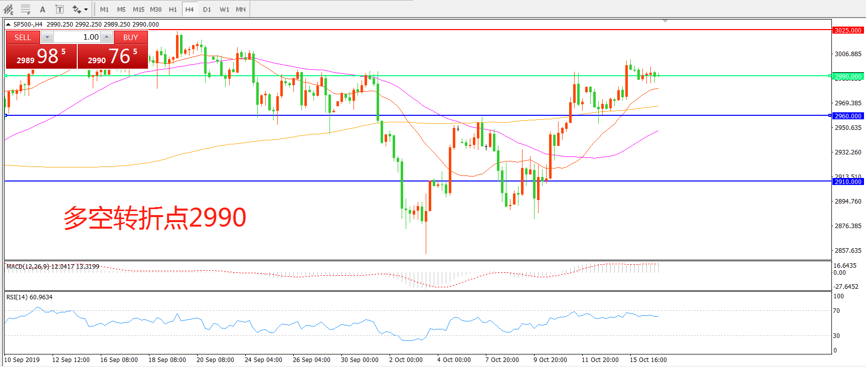 多空转折点:2990.00