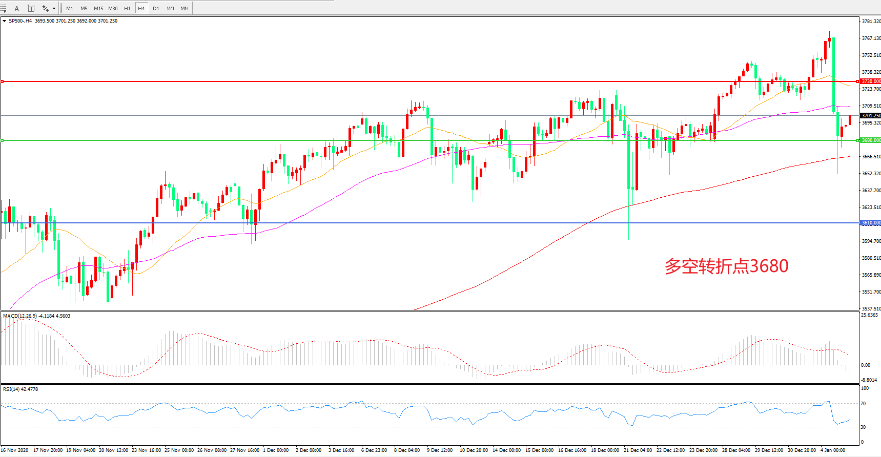 多空转折点:3730.00