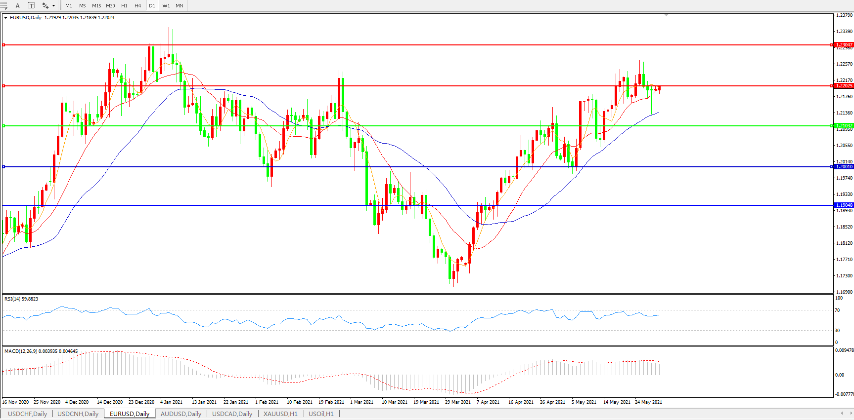 欧元兑美元EURUSD 日线图: