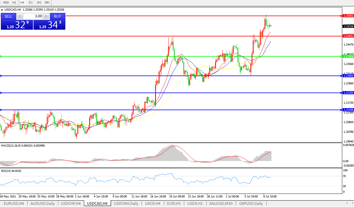 美元兑加元USDCAD    4小时图: