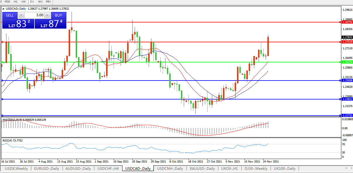 美元兑加元USDCAD    日线图: