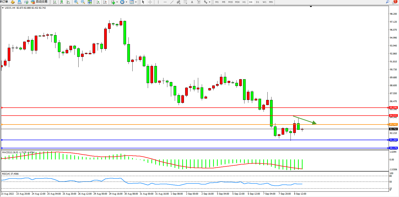 原油USOil——4小时K线图显示: