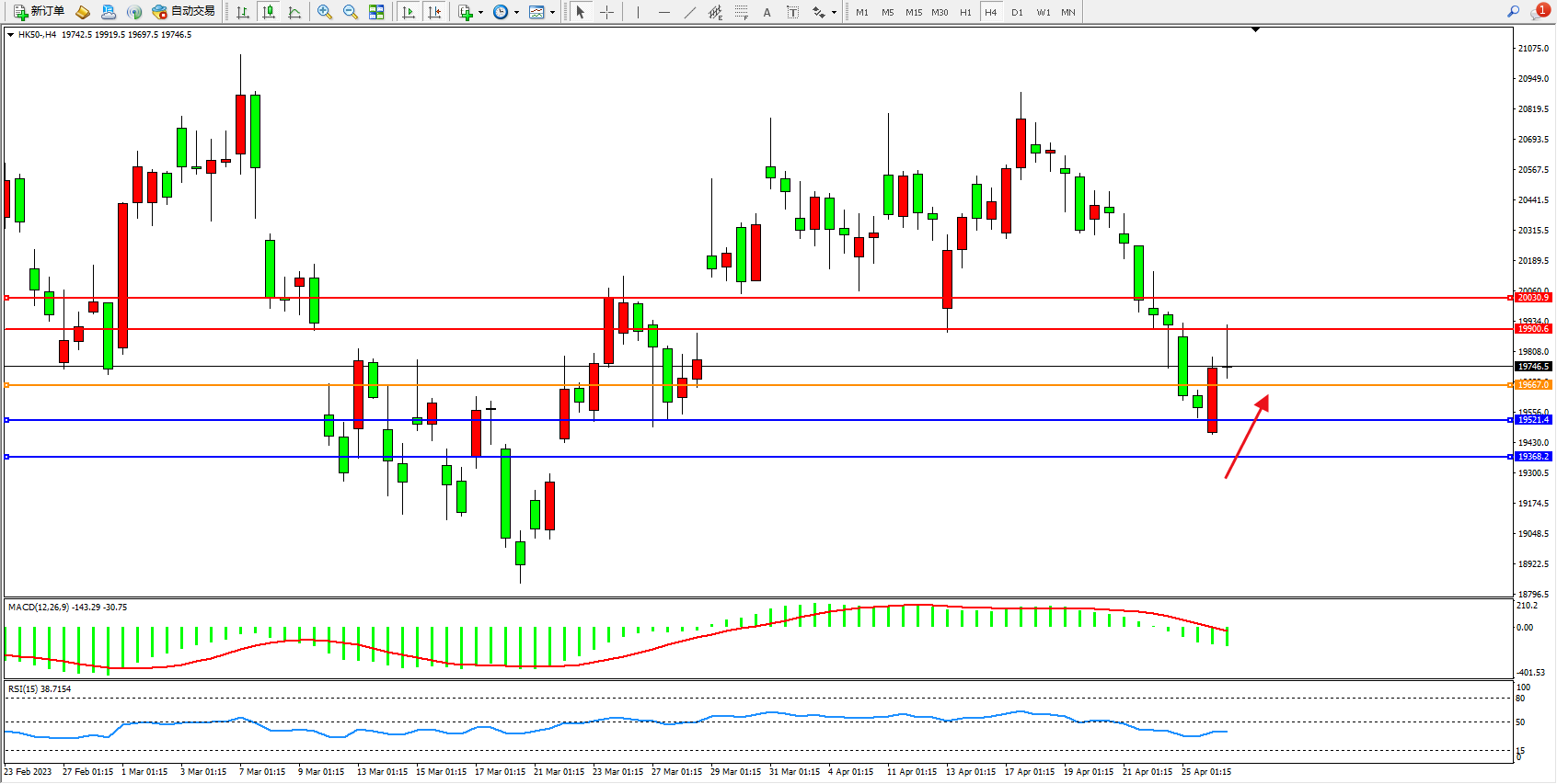 恒指HK50 4小时图