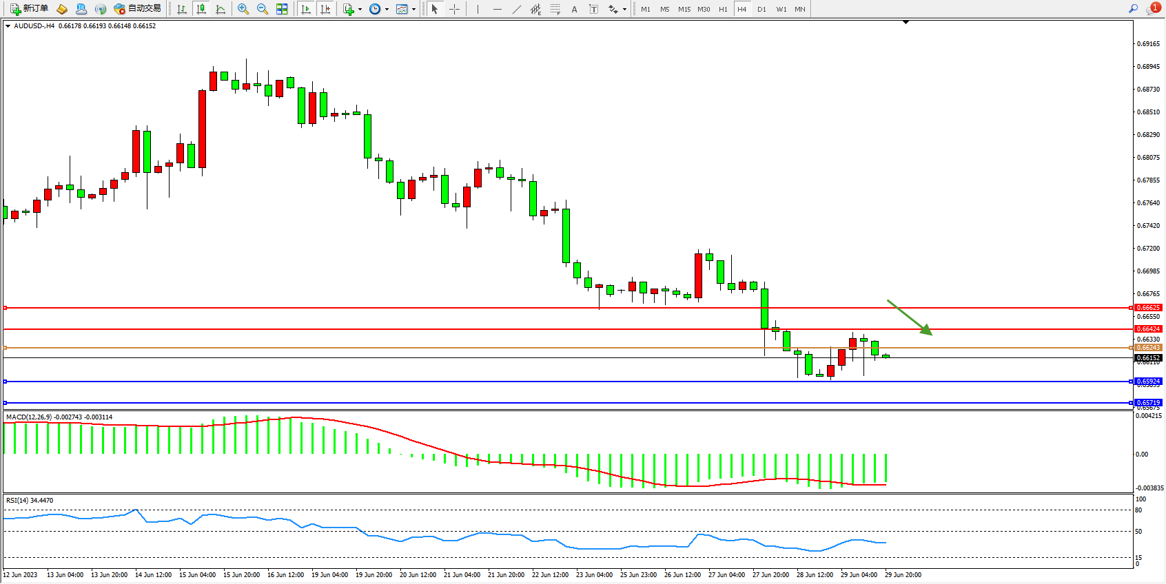 交易策略:0.66243下方看跌,目标0.65924 0.65719