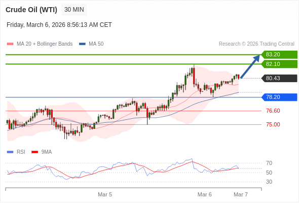 在 78.20 之上,看涨,目标价位为 82.10 ,然后为 83.20 。